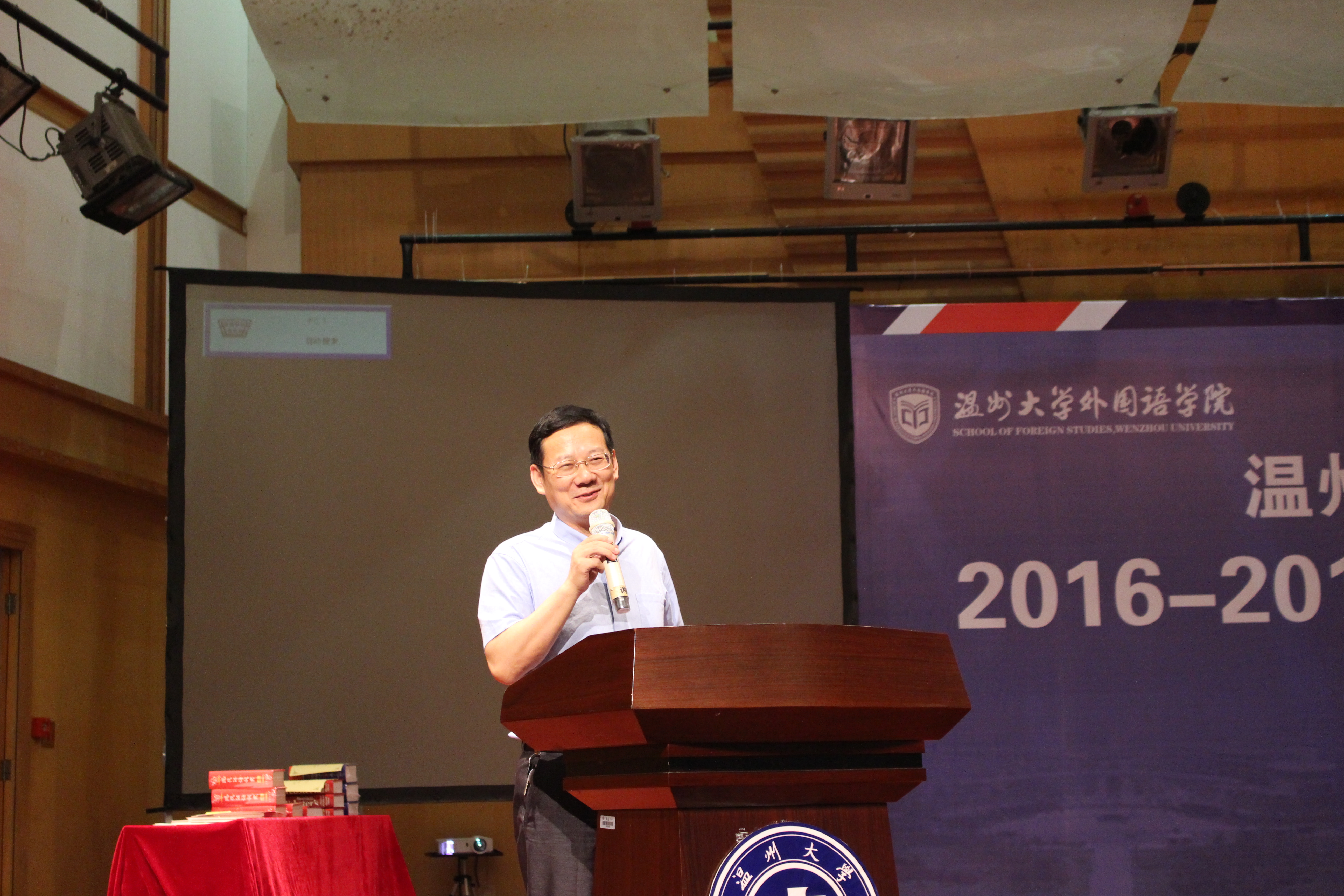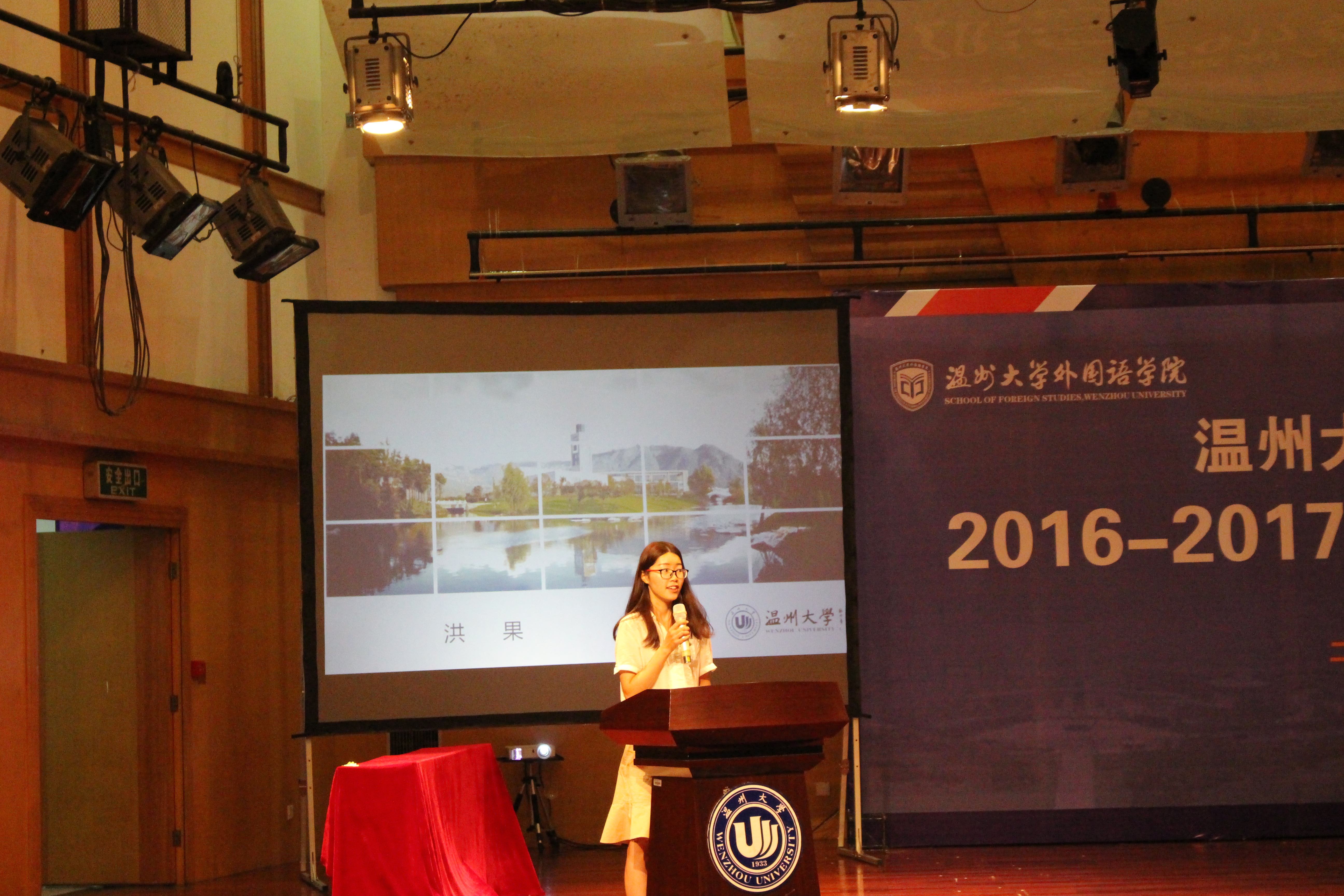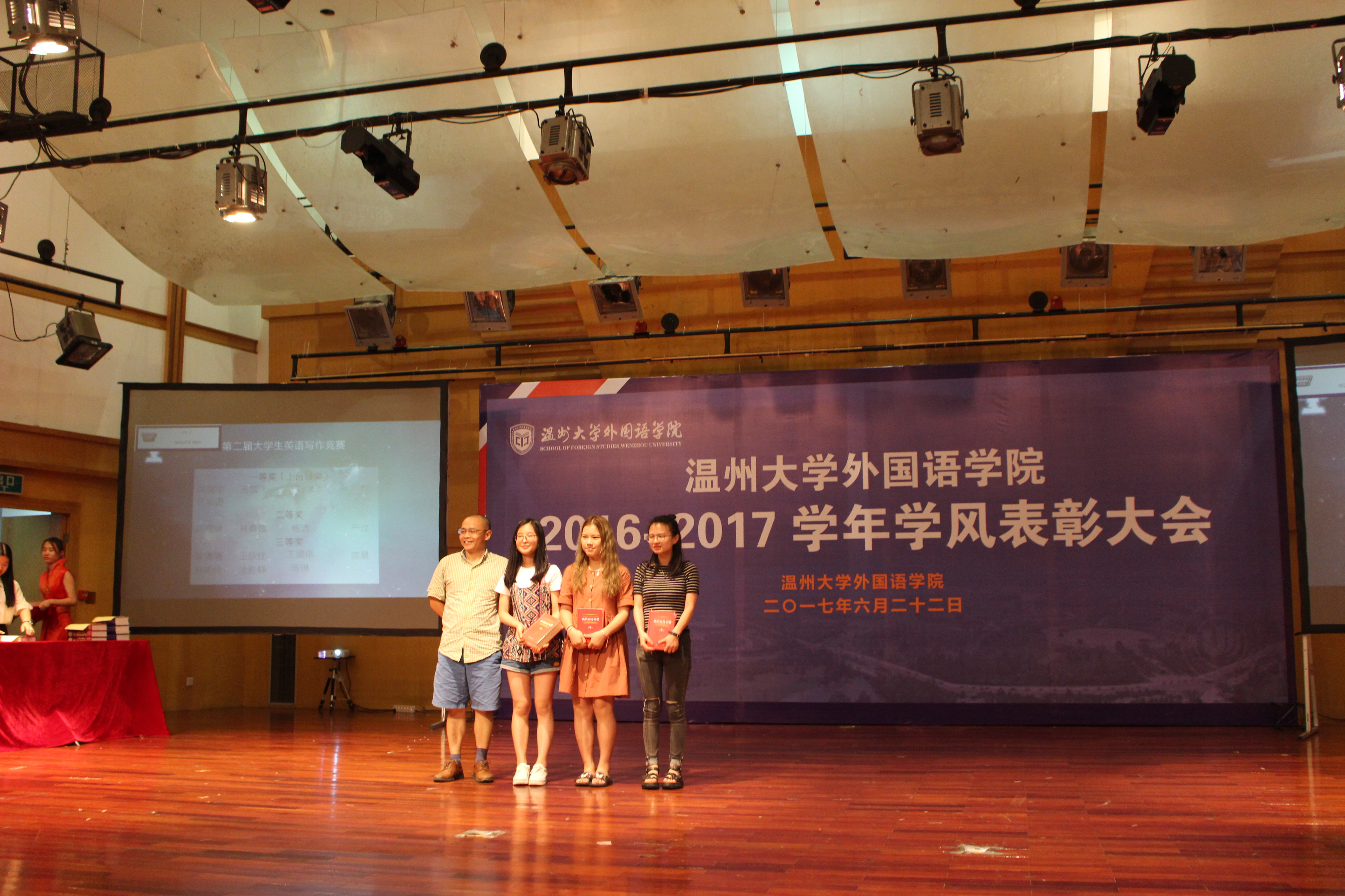 晚上6:00,本次表彰大会正式开始。首先,由16级翻译班的同学献上一首热情洋溢的歌曲,点燃现场的气氛。接着,毛院长上台致辞。他以四个"A"总结了这一年来必赢76net线路同学的学习所得并表达了对同学们的美好祝愿,希望同学们能够在未来取得更大的进步。随后,陈孟森书记公布2016-2017年国家奖学金、省政府奖学金等十六项奖项获奖人员名单,获奖人员依次上台领奖,全场气氛活跃,掌声此起彼伏。各项奖项颁奖结束后,李新德老师上台分享自己过去二十年的阅读心得。他提到学习既要注重课堂学习,更要注重在图书馆的自我学习。李新徳老师以自己多年来的亲身经历教导同学们必须养成常驻图书馆、常阅书籍的好习惯。此外,他还强调了在阅读过程中培养批判性思维能力的重要性。金力学长以努力这一关键词切入,指出了平台与自我学习之间相辅相成的内在关系,并与同学们分享了丰富的学习资源及如何取得专八优秀成绩的经验。最后,留学美国的14届学生洪果分享了在国外留学的经历。她主要介绍了在美国的业余生活、课内学习方式。通过在美国的学习体验,她提到有效的课外学习与课堂参与度有助于提高获取知识、提高能力。她亲切幽默的态度、充实有趣的讲话内容引得同学们笑声连连、掌声阵阵。