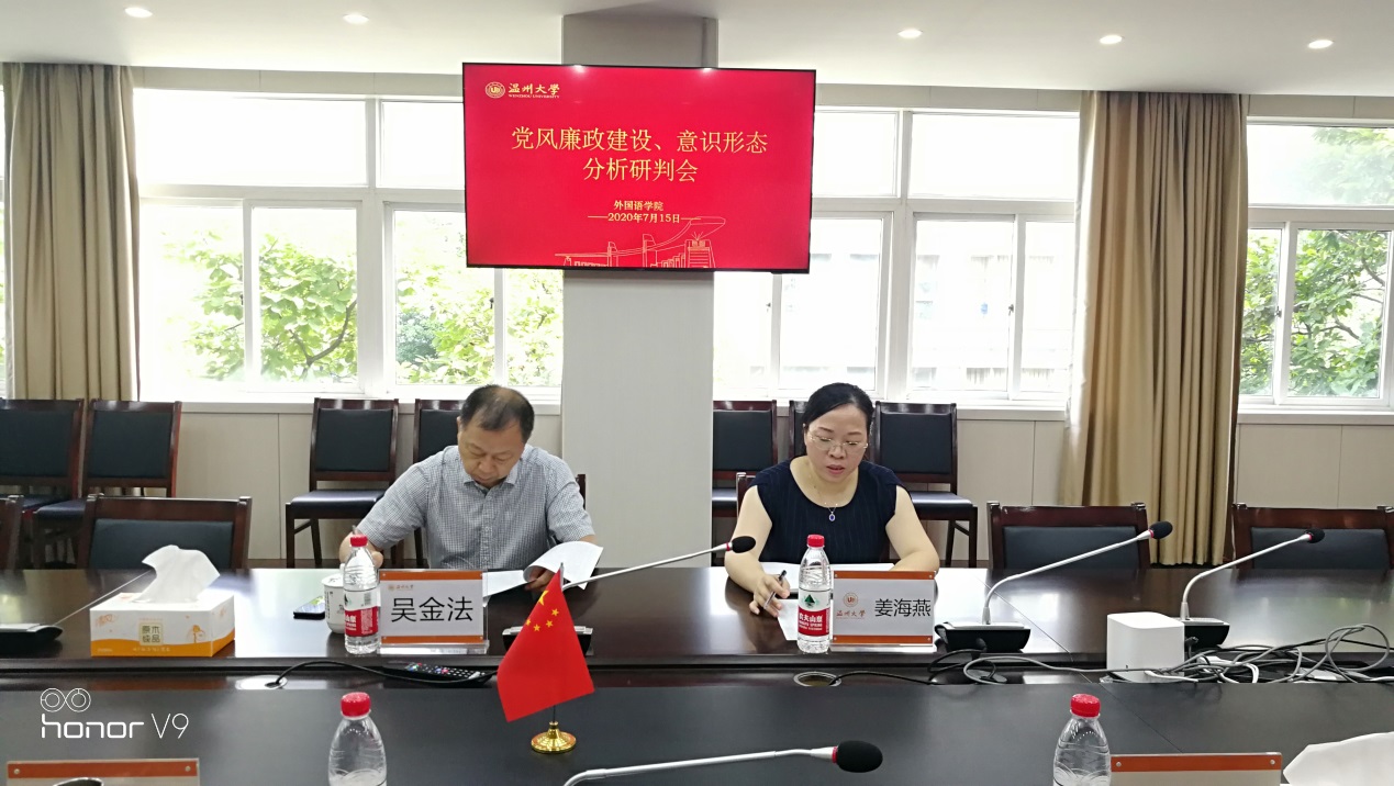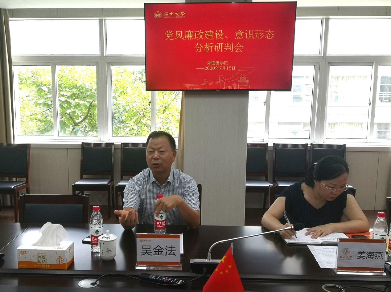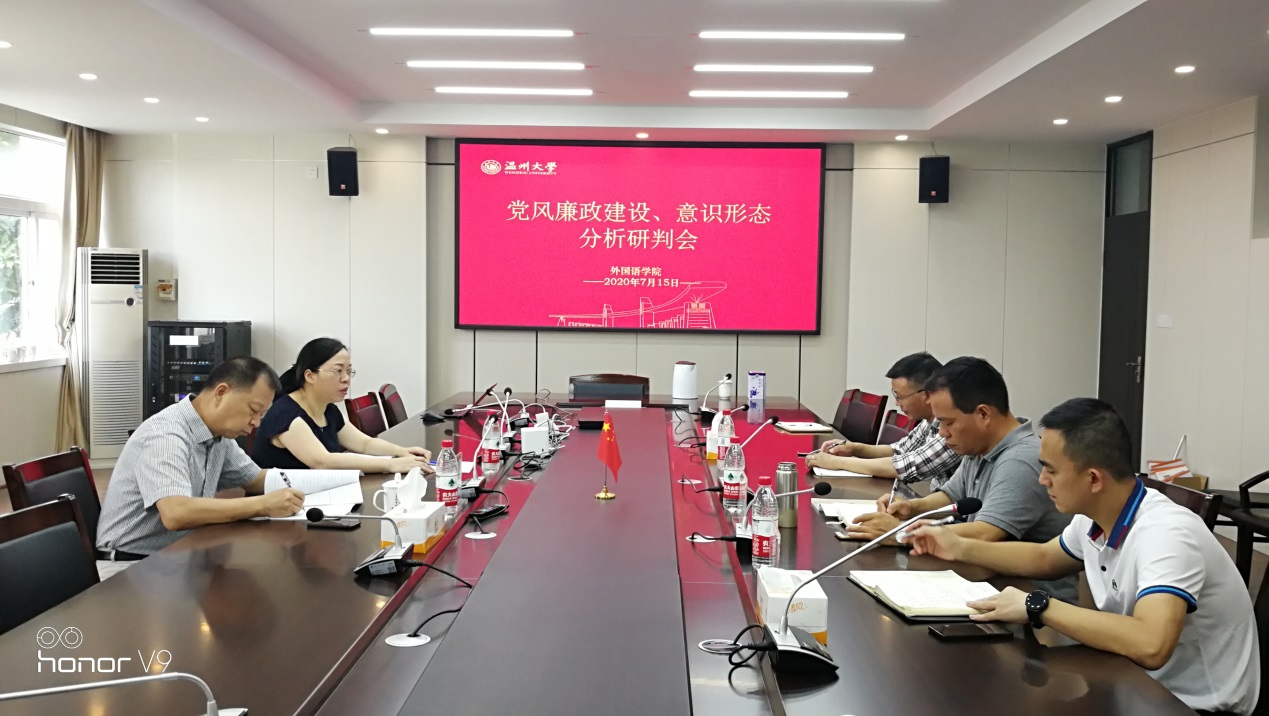 7月15日上午,必赢76net线路在211会议室召开2020年上半年党风廉政建设分析暨意识形态分析研判会。学院领导班子全体成员参加了会议,学校党委吴金法副书记出席了本次会议。