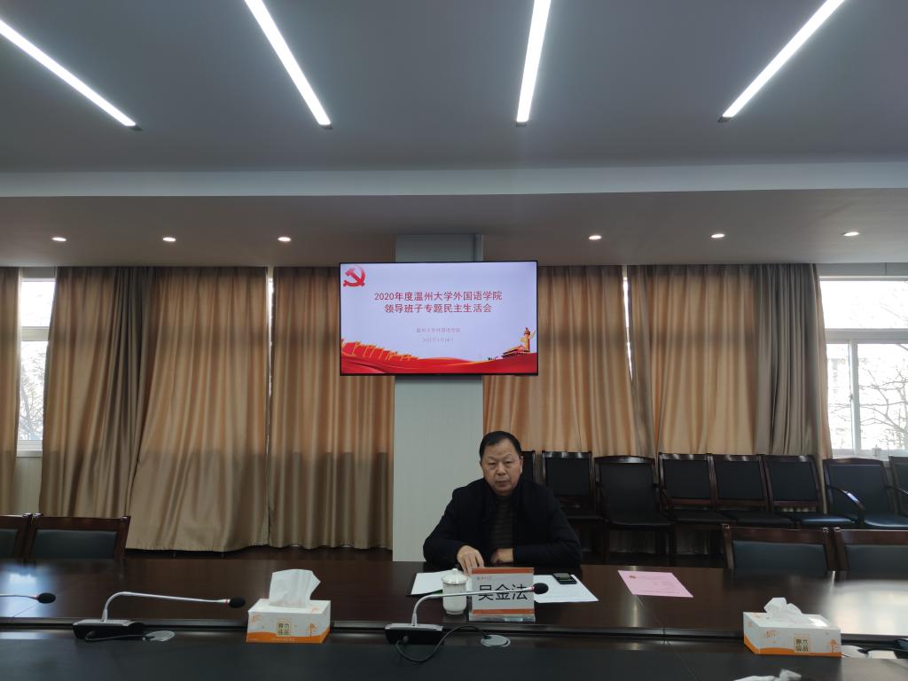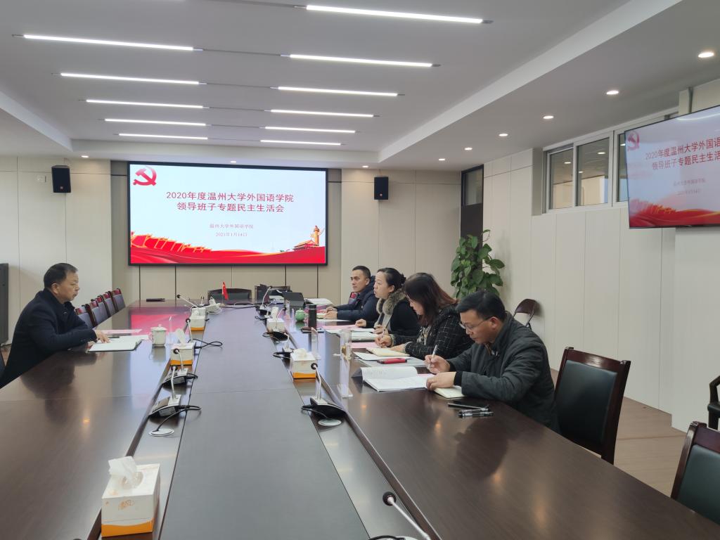 2021年1月15日,学院院领导班子专题民主生活会在外语楼212会议室召开。院领导班子全体成员参加会议,会议由院党委书记姜海燕主持,校党委委员、党委副书记吴金法莅临指导。