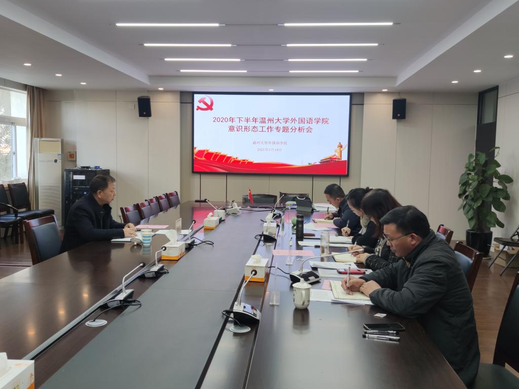 学院意识形态工作专题分析会。学院党委以习近平新时代中国特色社会主义思想为指导,深入贯彻中央、省、市委和校党委关于做好意识形态工作的一系列重要文件和指示精神,坚持把立德树人作为学院各项工作的中心环节,把思想政治工作贯穿到教育教学全过程,切实将意识形态工作抓细抓实,牢牢把握意识形态工作主导权,占领意识形态主阵地。